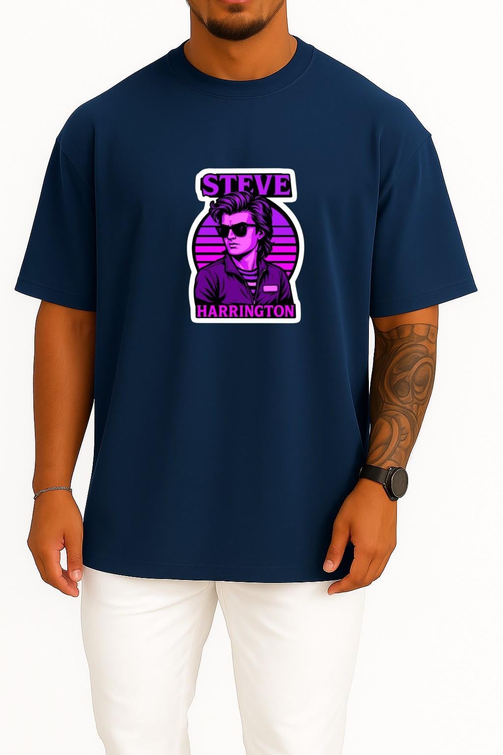 Oversize Stranger Things Steve Harrington Sticker Göğüs Baskılı Unisex T-Shirt