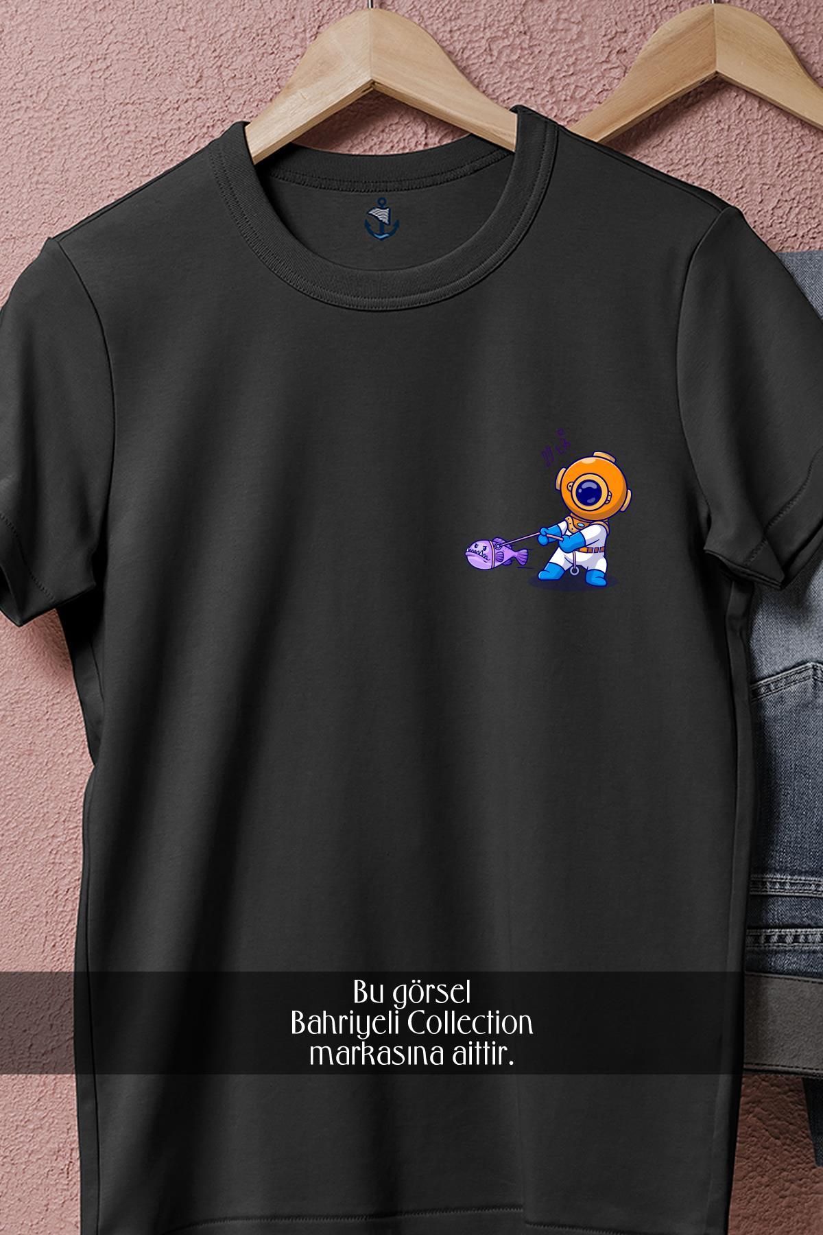 Oversize Balık Yakalayan Mini Dalgıç Diver  Cep Tasarımlı Unisex T-Shirt