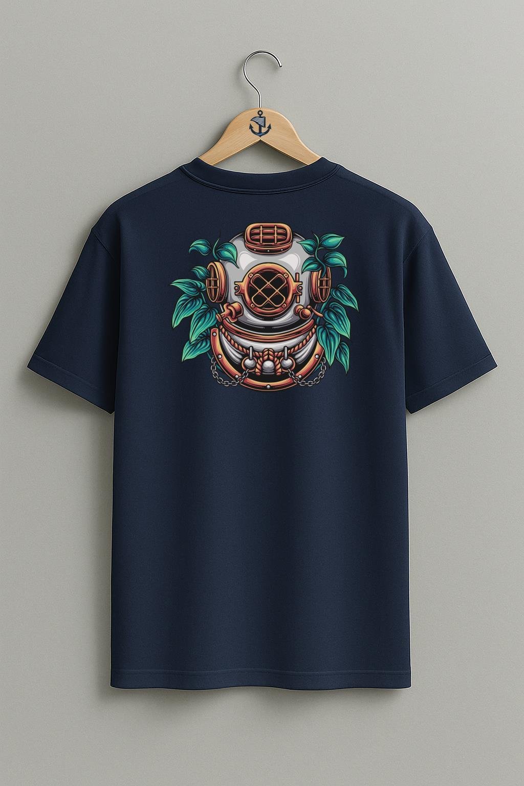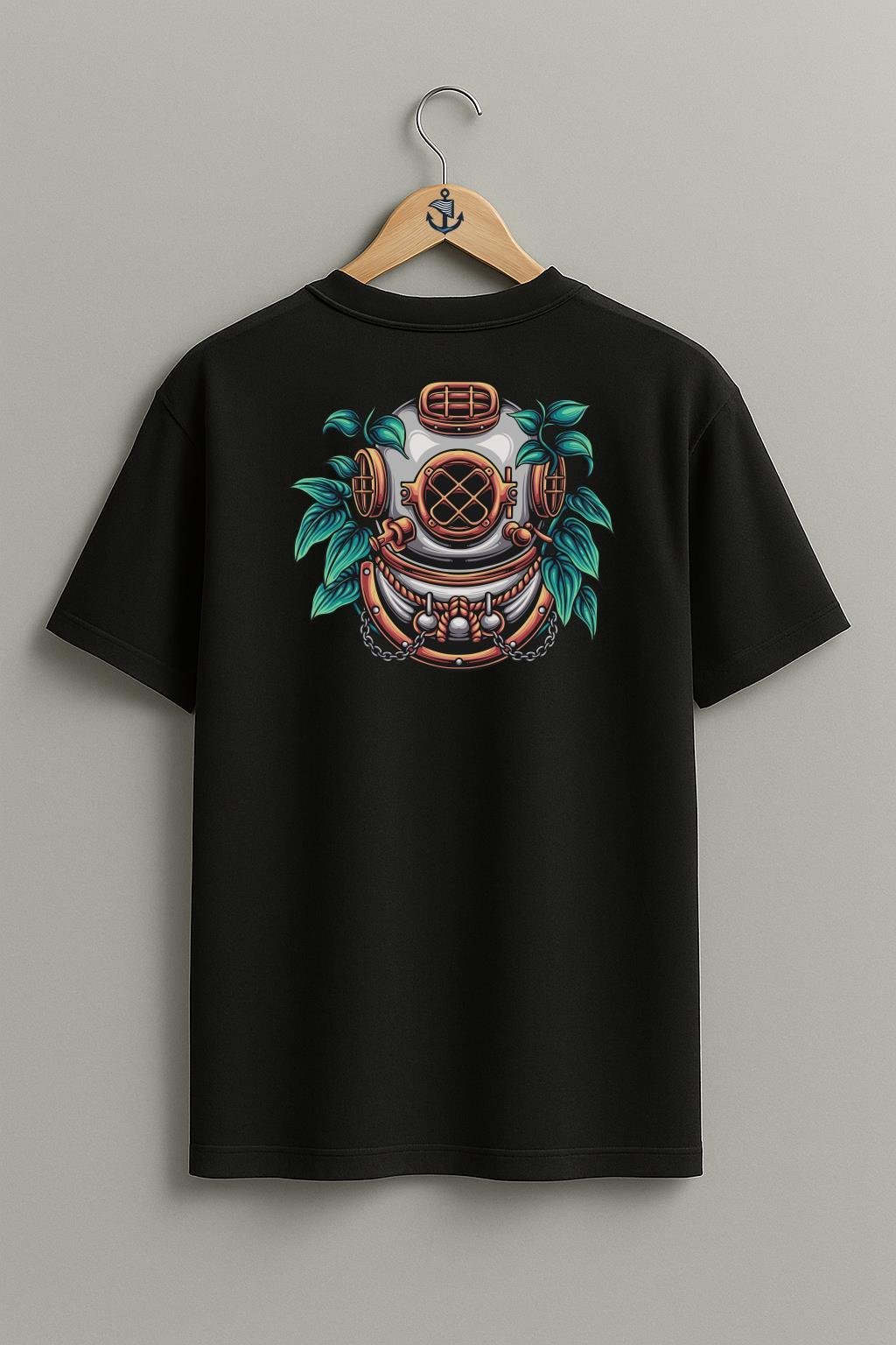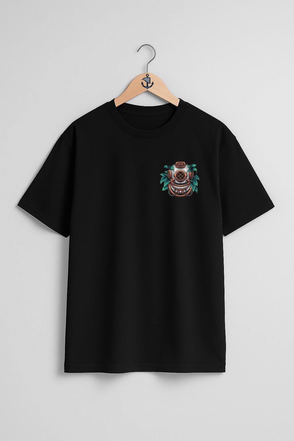 Oversize Dalgıç Diving Helmet With Plant İllustration Cep ve Sırt Tasarımlı Unisex T-Shirt