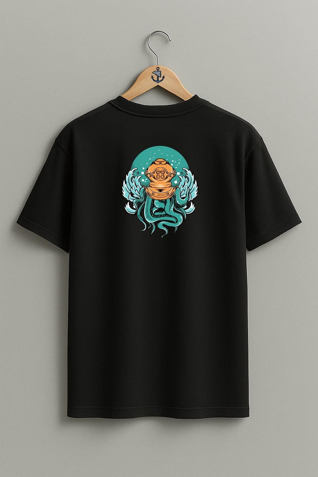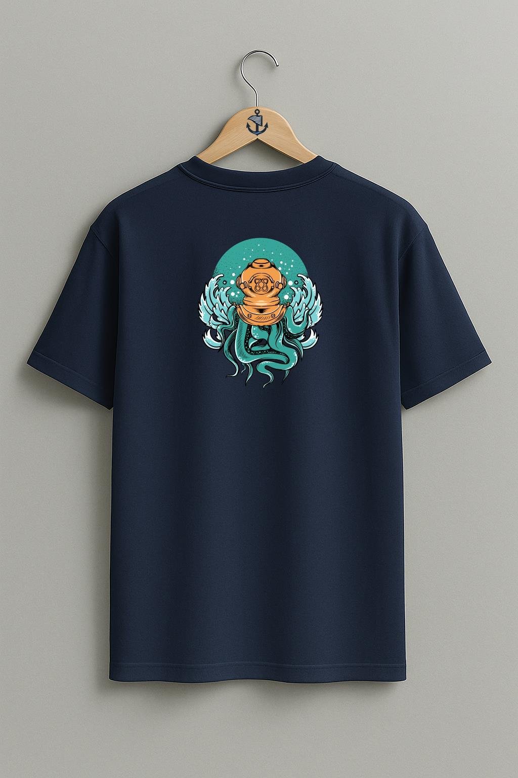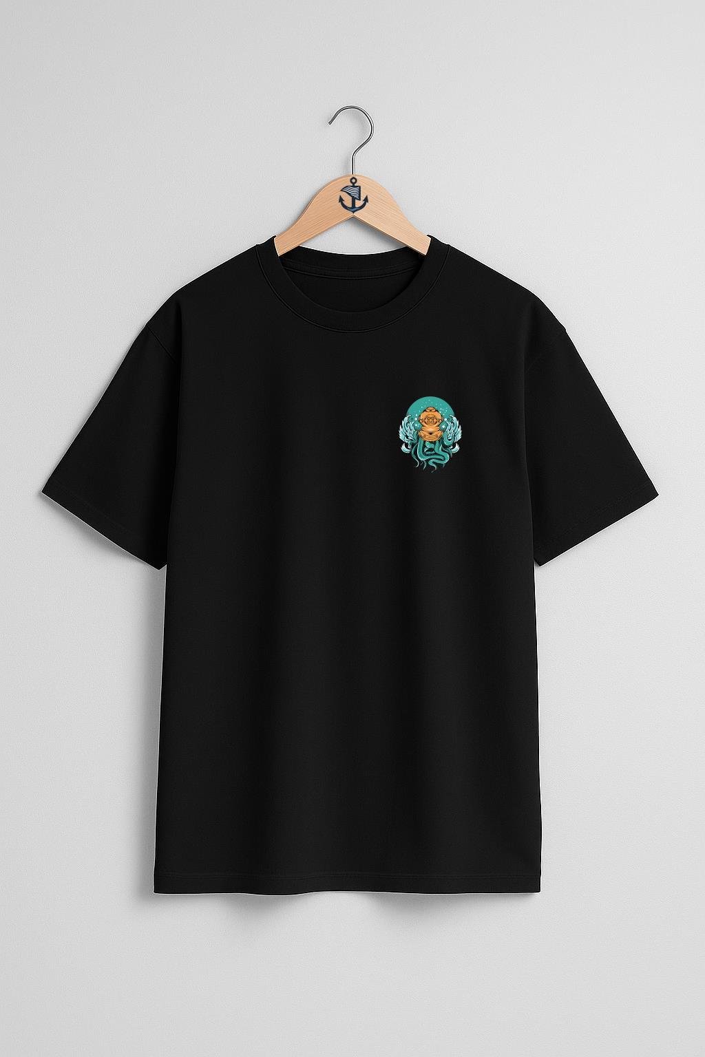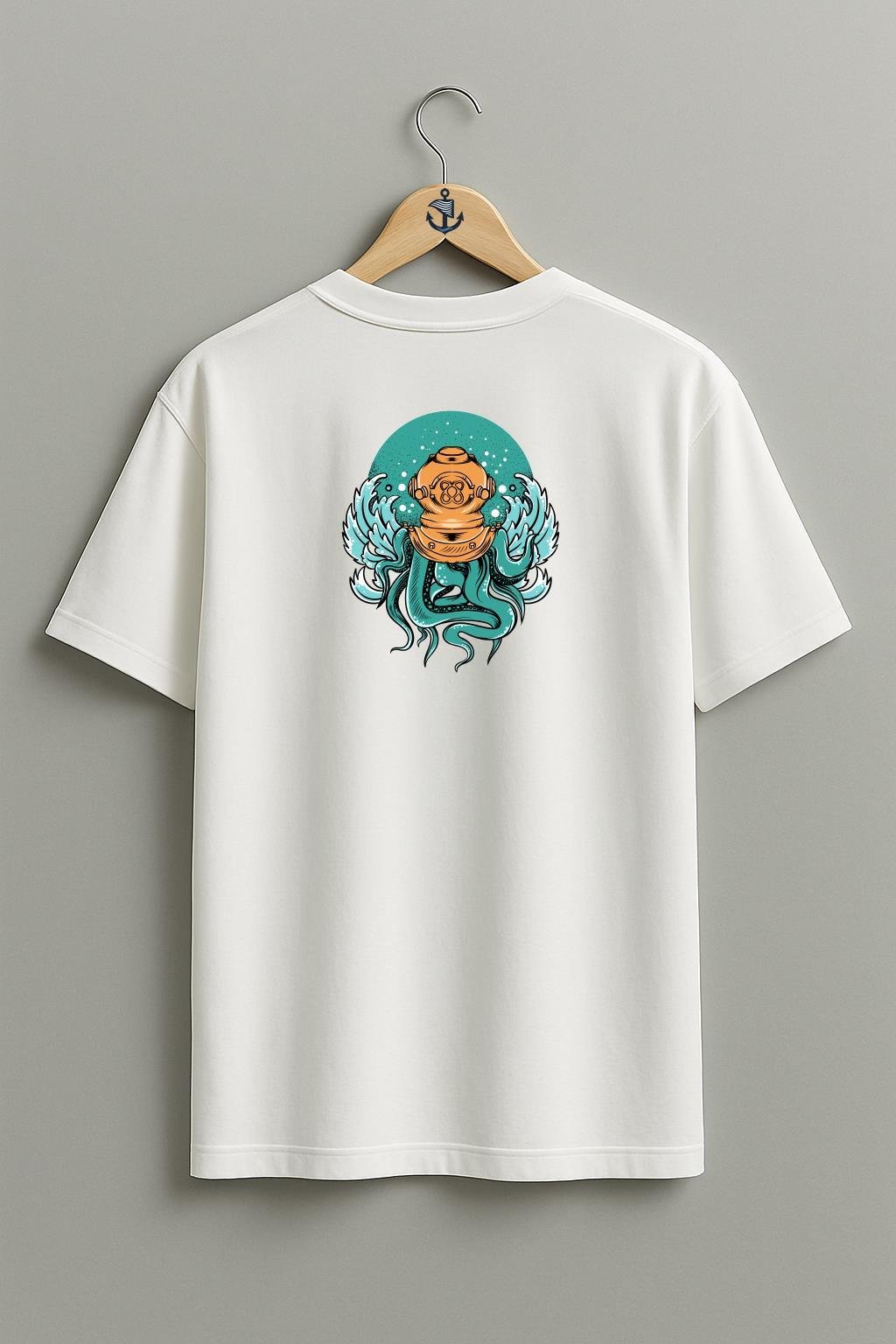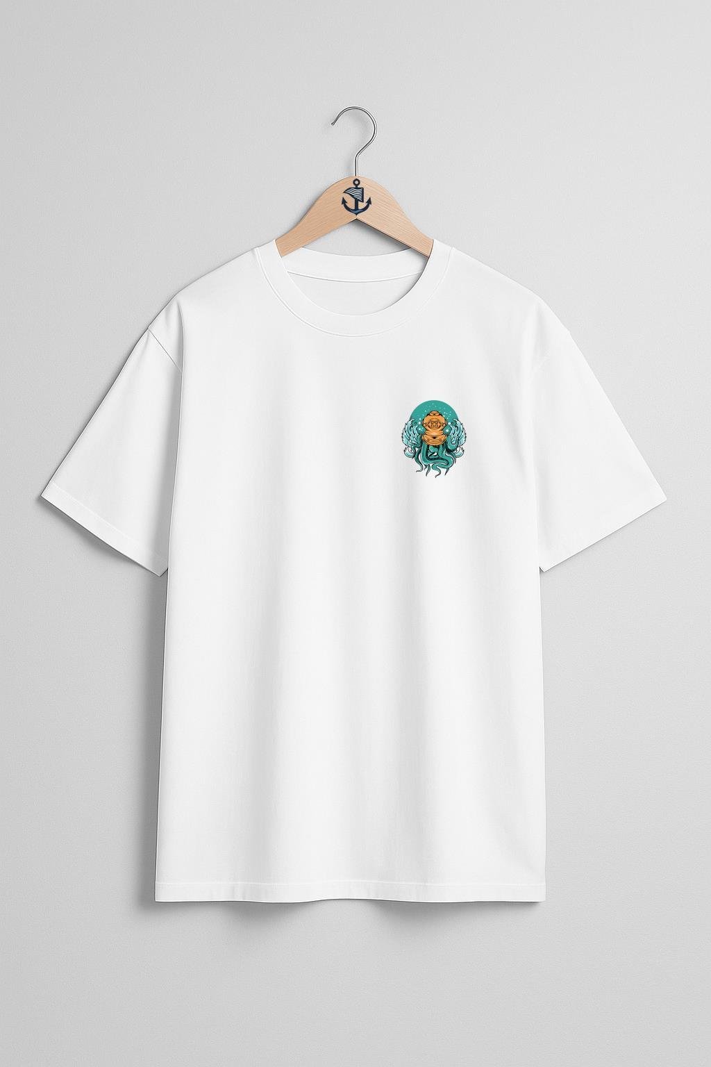Oversize Dalgıç Octopus Diving With A Helmet Cep ve Sırt Tasarımlı Unisex T-Shirt