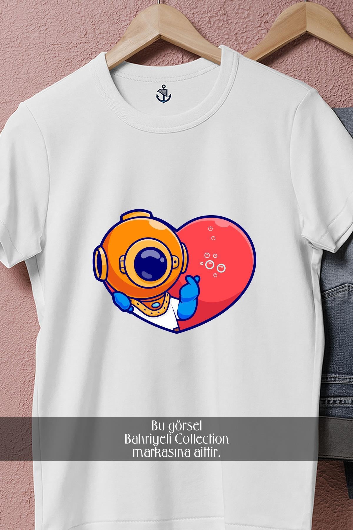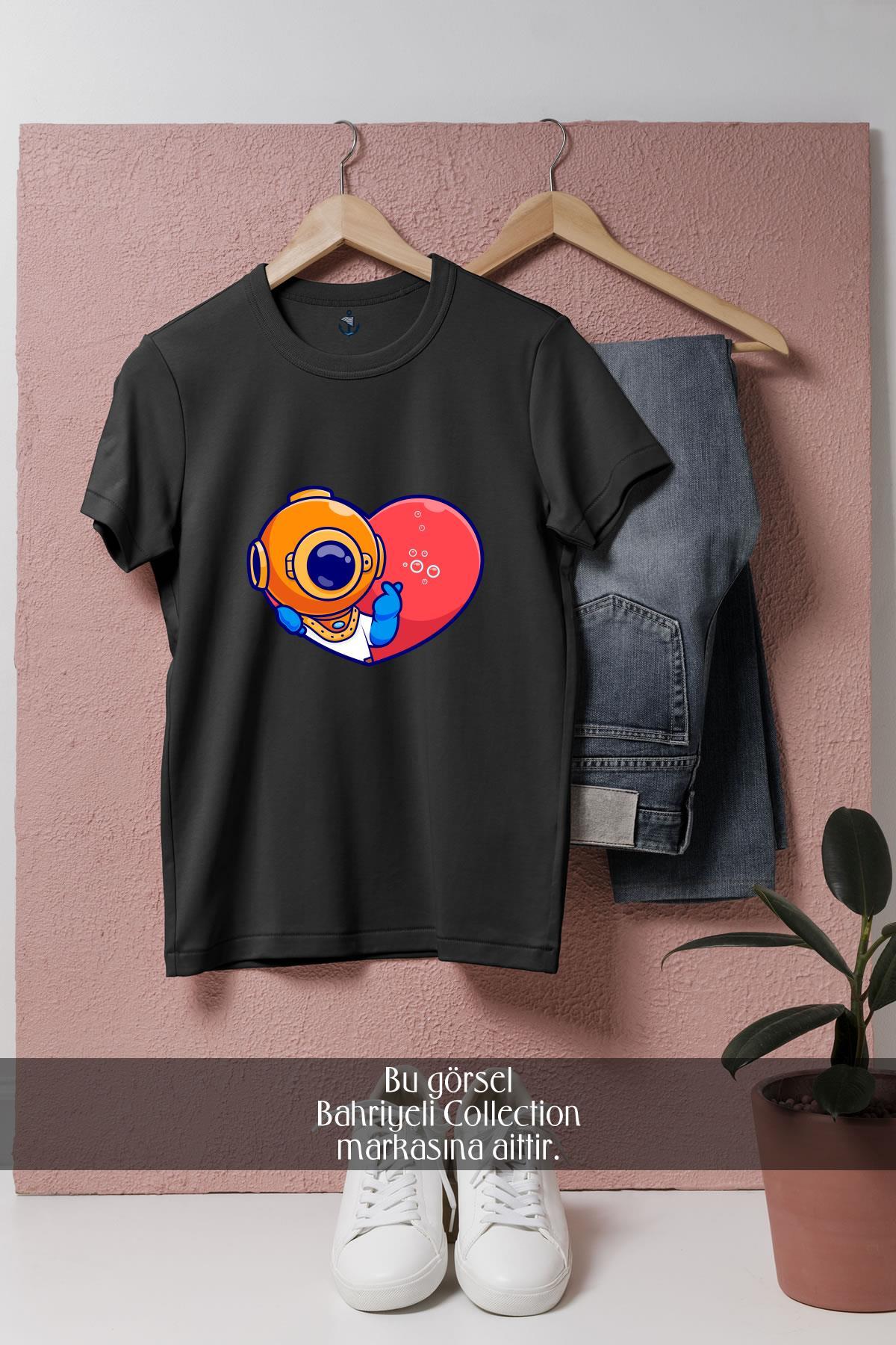 Oversize kalp içinde mini dalgıç - diver Tasarımlı Unisex T-Shirt