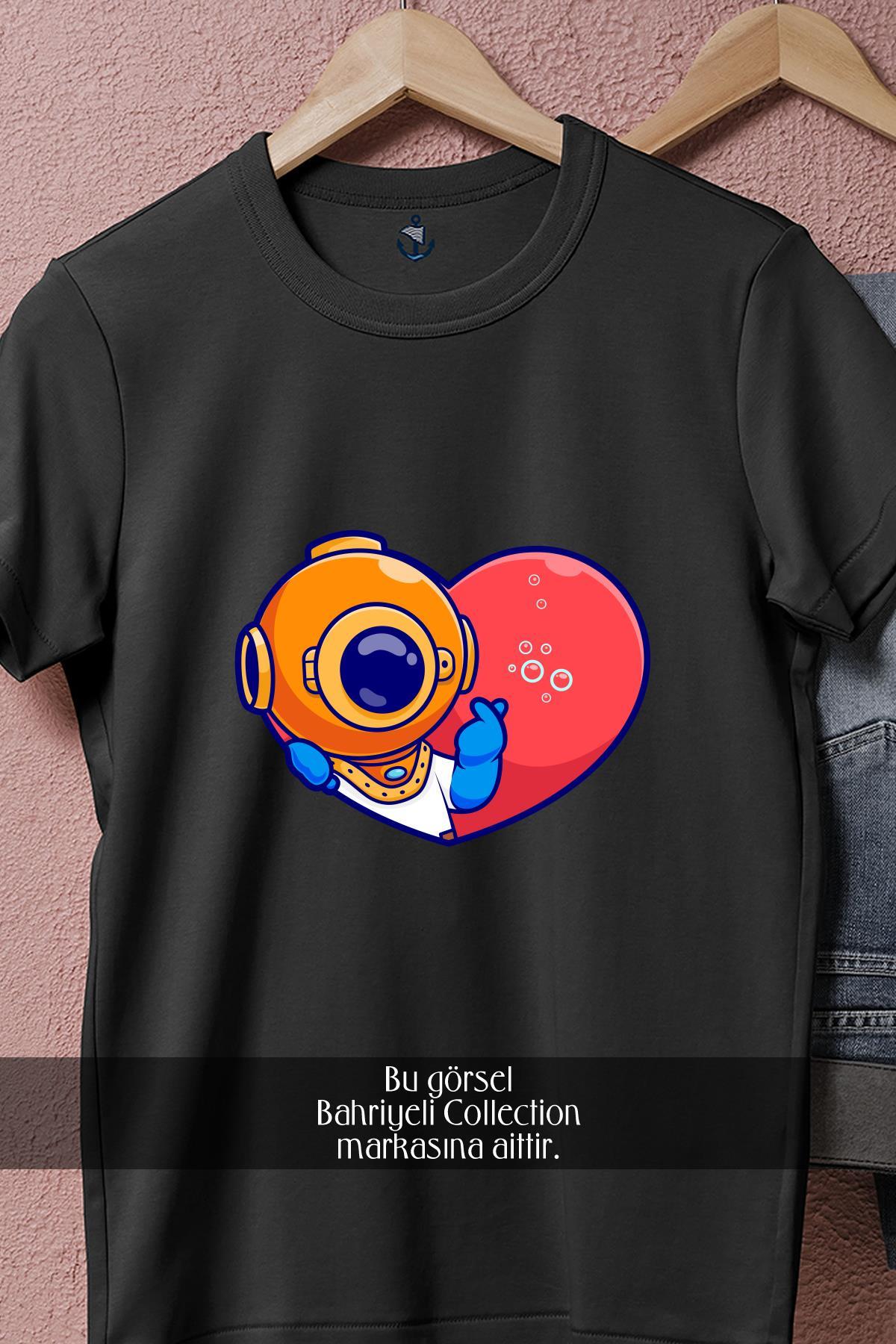Oversize Kalp İçinde Mini Dalgıç - Diver  Tasarımlı Unisex T-Shirt