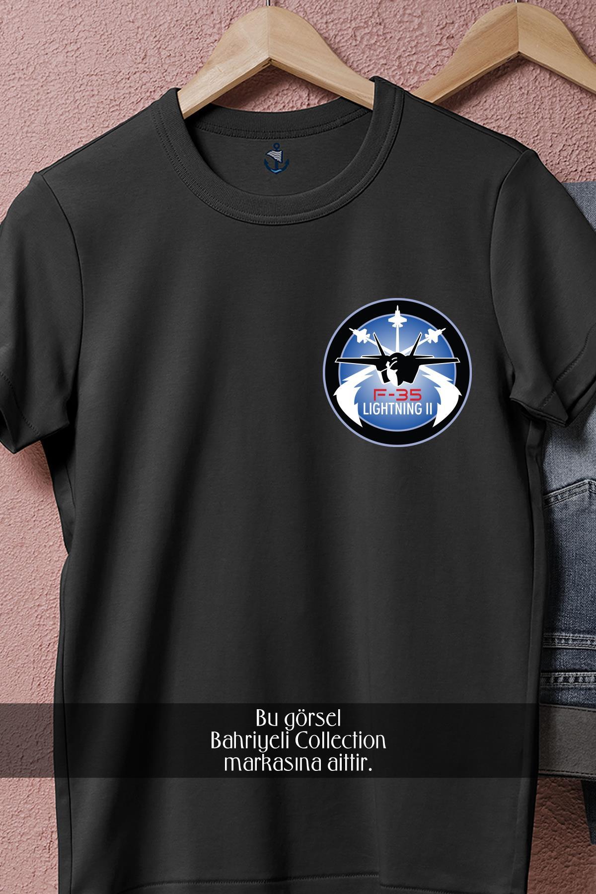 Oversize Lockheed Martin F-35 Lightning Savaş Uçağı Cep Tasarımlı Unisex T-Shirt