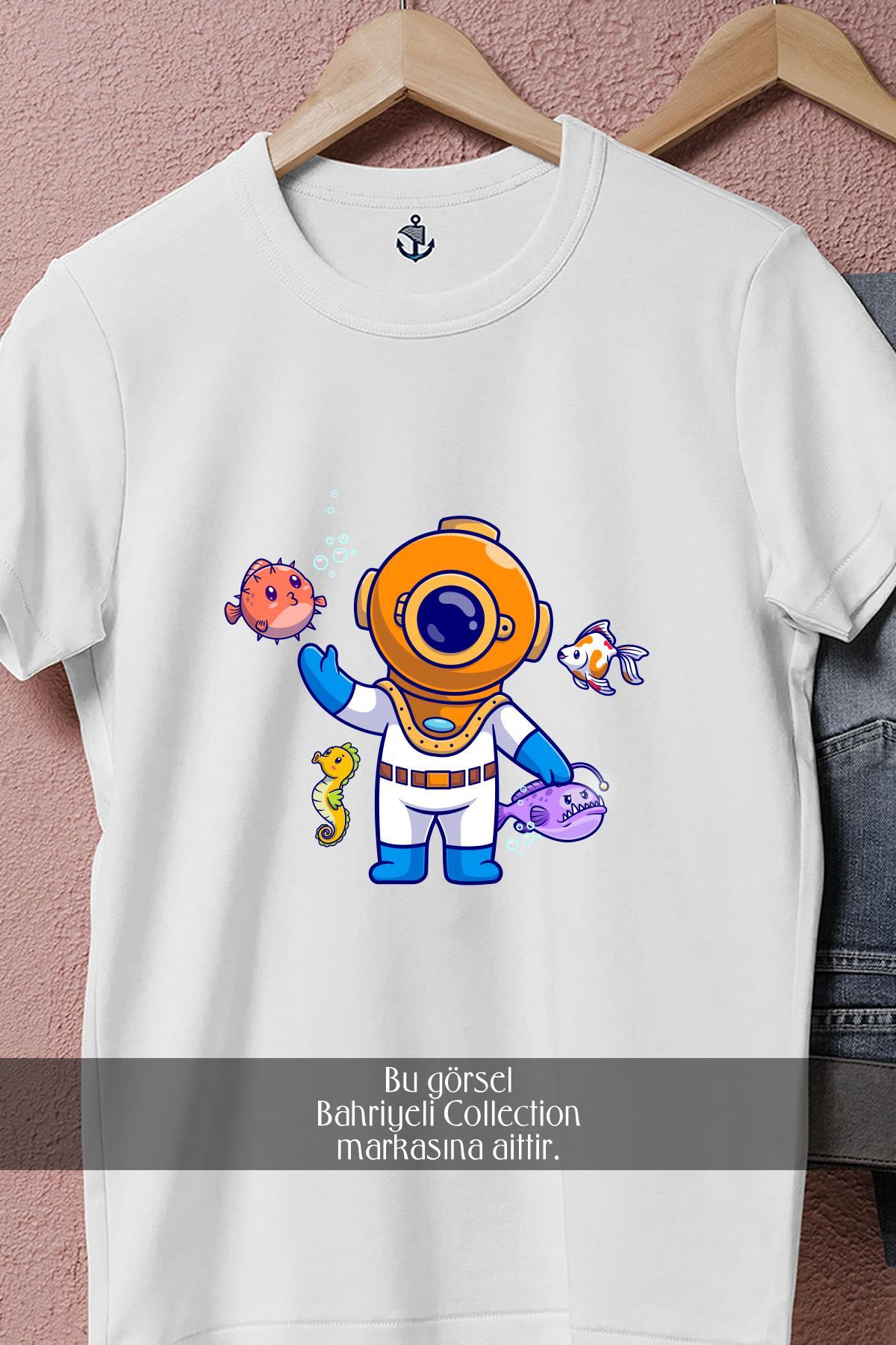 Oversize Mini Dalgıç - Diver Ve Balıklar Tasarımlı Unisex T-Shirt